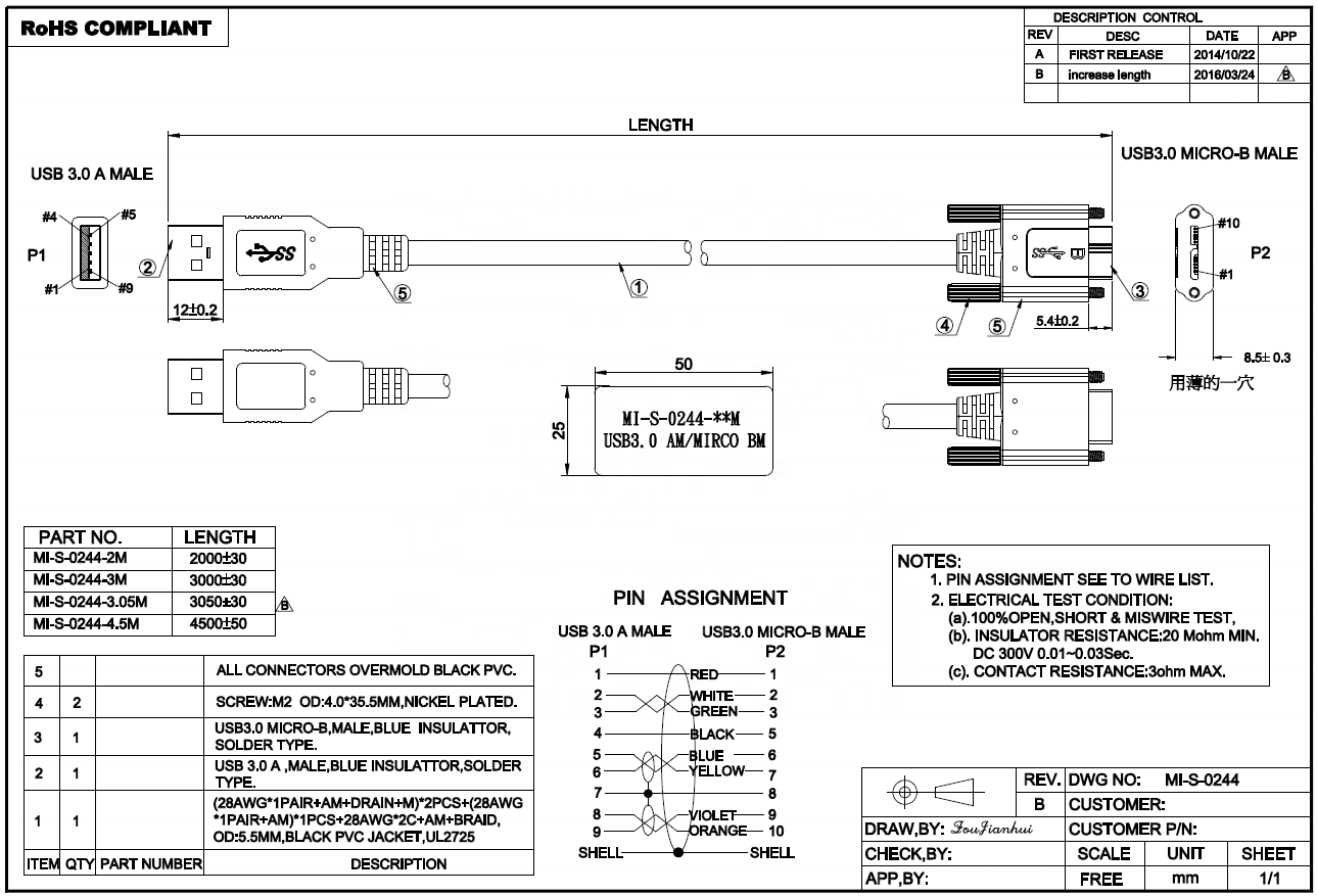 * Allied 9434, 12326, 12327, 12328, 12329 USB3.0 A-micro B corper cables.